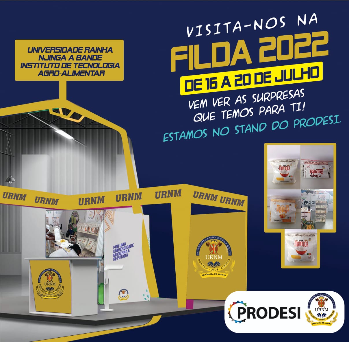 O Instituto de Tecnologia Agro-Alimentar (ITA), Unidade Orgânica adstrita a Universidade Rainha Njinga a Mbande participa, desde hoje, na 37.ª edição da Feira Internacional de Luanda (FILDA), a convite da Organização das Nações Unidas para Agricultura e Alimentação (FAO), bem como o Projecto Agro-Prodesi. Na feira, que foi presidida pelo Ministro de Estado para Coordenação...
