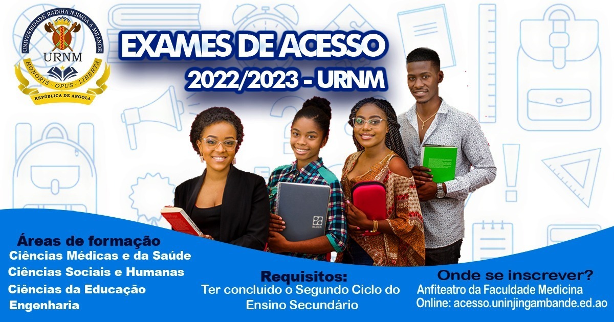 As inscrições de acesso à Universidade Rainha Njinga a Mbande para o ano lectivo 2022-2023 arrancam, nesta Segunda-feira, 01 de Agosto, no anfiteatro da Faculdade de Medicina, bem como através do correio electrónico: acesso.uninjingambande.ed.ao.Para as inscrições, os candidatos deverão levar consigo a cópia do certificado do Segundo Ciclo, ou equivalente, cópia do BI., acompanhada do...