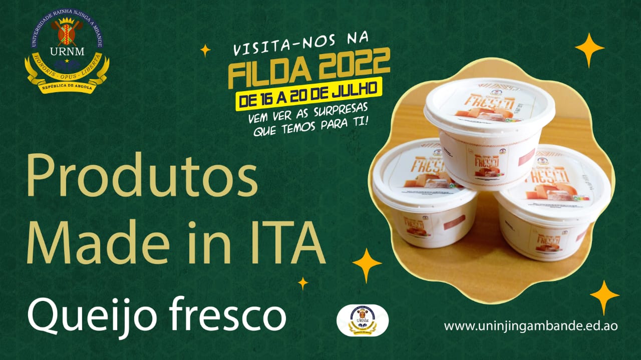 O queijo fresco é um dos oito (8) produtos expostos pelo Instituto de Tecnologia Agro-Alimentar (ITA), Unidade Orgânica adstrita a Universidade Rainha Njinga a Mbande, na 37.ª Edição da Feira Internacional de Luanda (FILDA). O suplemento alimentar é produzido com água; proteínas; (em grande proporção); gorduras; sais minerais e lactose. À guisa de informação, o...