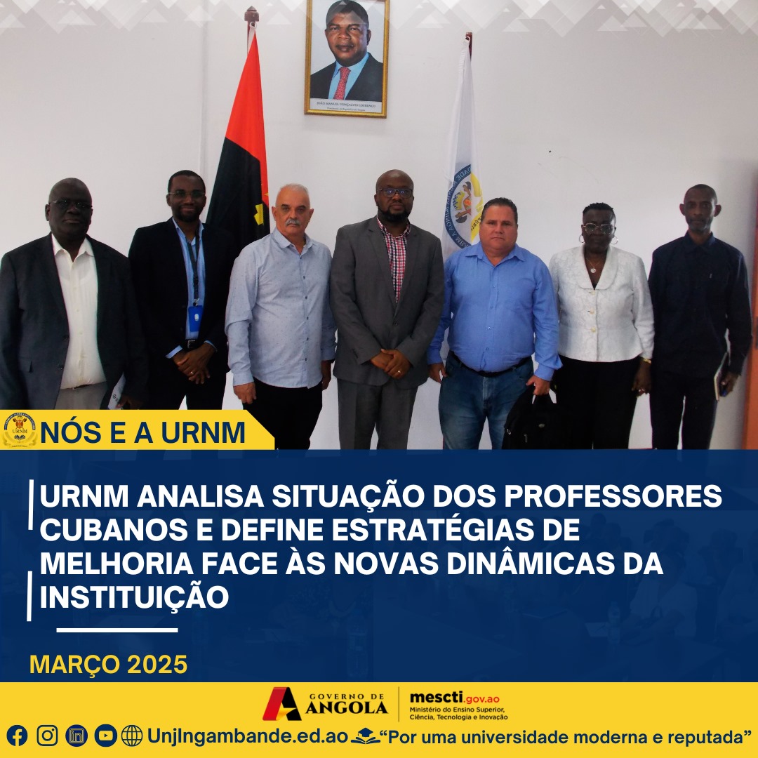 A Universidade Rainha Njinga a Mbande (URNM) reforçou, nesta Segunda-feira, 31 de Março de 2025, o seu compromisso com o bem-estar dos docentes cubanos ao realizar, um encontro estratégico com a nova Coordenação Provincial da ANTEX em Malanje. A reunião decorreu na sala de reuniões da Faculdade de Medicina e foi presidida pelo Magnífico Reitor...Read More