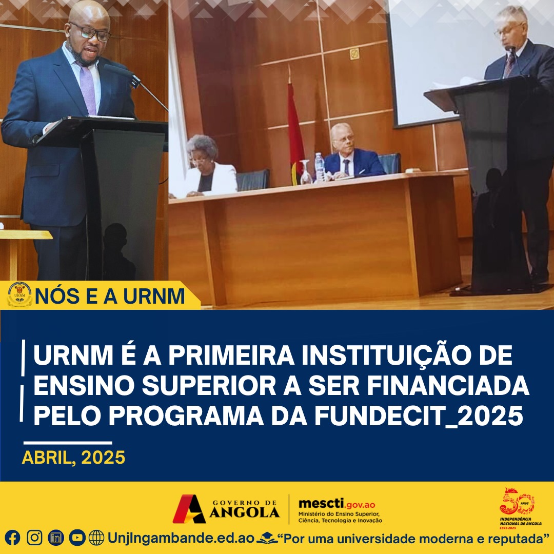 É com enorme orgulho que partilhamos o discurso do Magnífico Reitor da URNM, Prof. Dr. Eduardo Ekundi Valentim, numa cerimónia histórica realizada no auditório do Ministério das Finanças em Luanda. Este evento marca o início do financiamento dos projectos aprovados pela FUNDECIT – um marco para a ciência e o desenvolvimento em Angola. No seu...Read More