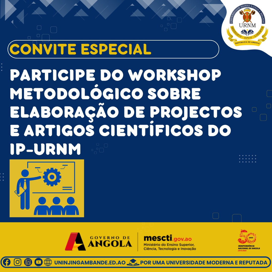 O Instituto Politécnico da Universidade Rainha Njinga a Mbande (IP-URNM), por via do Departamento de Investigação Científica, Inovação, Empreendedorismo e Pós-Graduação, realiza no próximo dia 24 de Abril de 2025, o Workshop Metodológico sobre Elaboração de Projectos e Artigos Científicos, no Auditório do Instituto de Tecnologia Agro-Alimentar. O evento visa fortalecer as competências da comunidade...Read More