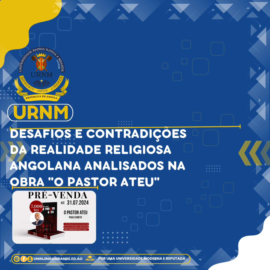 “O Pastor Ateu”, é o título da obra literária do Professor Paulo Cabeto, à qual a Universidade Rainha Njinga a Mbande tem a honra de anunciar o lançamento. A obra é uma narrativa que convida à reflexão de como a fé cega a razão. O enredo transcende as páginas e entranha-se nos bastidores da realidade...Read More
