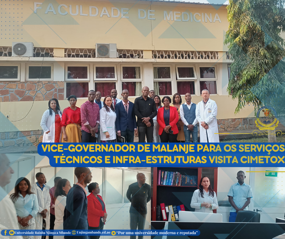 Na última Quinta-feira, o Vice-Governador para os Serviços Técnicos e Infra-estruturas da província de Malanje, Engenheiro Duarte André Ginga, realizou uma visita ao Centro de Investigação em Medicina e Toxicologia (CIMETOX) da Universidade Rainha Njinga a Mbande (URNM). Durante a visita, Duarte André Ginga foi conduzido a conhecer as instalações do CIMETOX, incluindo o serpentário...Read More